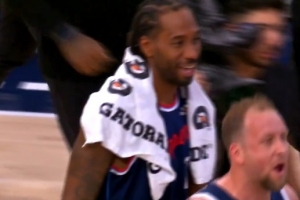 比赛结束后,两队爆发冲突,正在与对手拥抱致意的伦纳德对着旁边的裁判喊了句:they fighting (看,他们在打架),随后微微一笑。